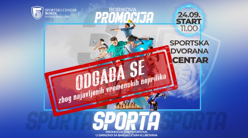 Read MoreСЦ „Борик“ обавјештава јавност да је манифестација “3. Борикова промоција спорта”, која је била планирана за сриједу, 24. септембра 2025.